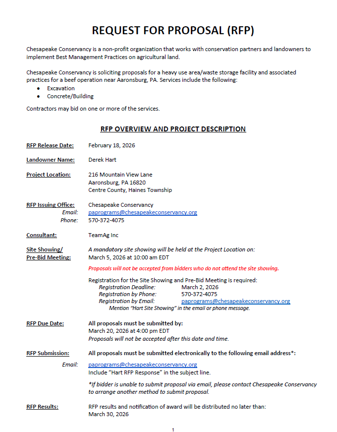 Request for Proposal - Heavy Use Area/Waste Storage Facility, Centre County